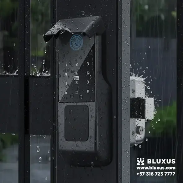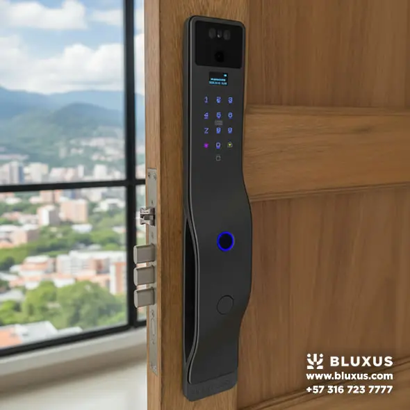 Para clientes Bluxus, la tarifa preferencial de instalación es de $180.000 COP (aprox). Esto incluye el montaje profesional en Puertas de Seguridad o madera, configuración y capacitación. Si es en el Oriente (Rionegro/Llanogrande), puede tener un recargo por desplazamiento que te confirmamos antes