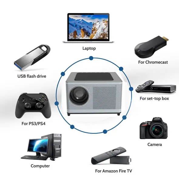 *Bajo ruido y eficiencia energética: Bajo nivel de ruido y duradero proyector de cine en casa gracias a la brillante tecnología de refrigeración del ventilador. Vida útil de la lámpara hasta 30000 horas. Además, el diseño avanzado de la bombilla es muy eficiente en energía, utilizando menos energía para disfrutar de más entretenimiento.