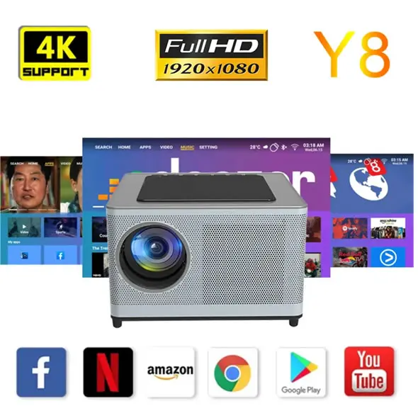PROYECTOR LED SMART VIDEO BEAM WIFI 2.4G / 5G 9500 LÚMENES ANDROID 9 BLUETOOTH MODELO Y8