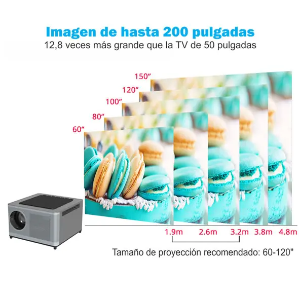 *Gran pantalla de cine en casa: Disfruta de tu película favorita en una pantalla de entre 45 y 200 pulgadas con una distancia de proyección de 1.5 a 5.5 m. Amplía tu vista en una habitación pequeña, varía de un programa de dibujos animados para niños a una película espía de alta tecnología, en una fiesta o película los fines de semana. (60-150 pulgadas es el tamaño de proyección perfecto)