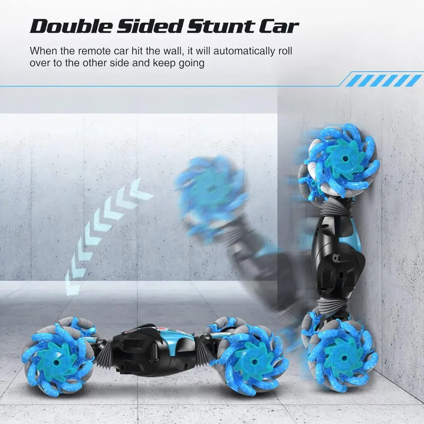 Carro a Control Remoto 4×4 para Niños y Adultos: El auto de acrobacias para niños y jóvenes adopta un sistema de control remoto de 2.4 GHz, para una larga distancia de control de más de 262.5 ft. Características de escalada, torsión, movimiento hacia adelante y hacia atrás, demostración automática de rotación de 360 grados, 6 fuerza motriz, reloj y gesto que detecta control remoto, deriva.