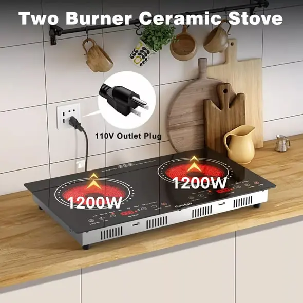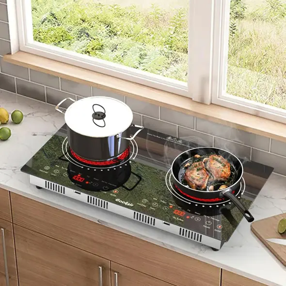 Estufa de Inducción Electrica de 2 Puestos Digital 1200W Cada Hornilla, total 2400 W