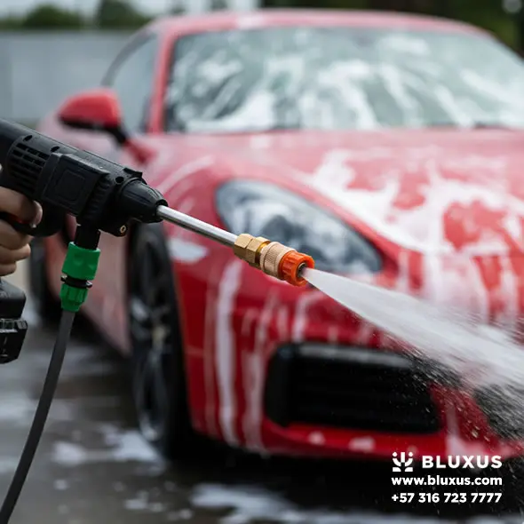 No. Nuestro sistema está calibrado en un «punto dulce» de presión. Para la carrocería y plásticos, debe utilizar la boquilla de 40° (abanico) que esparce el agua de forma segura. La boquilla de 0° (chorro directo) está diseñada exclusivamente para remover lodo incrustado en llantas, rines, o para limpiar las juntas del piso en su patio.