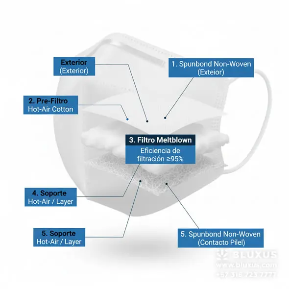 Para garantizar la autenticidad, usted debe verificar tres factores. Primero, que la mascarilla contenga al menos cinco capas funcionales, siendo la central el filtro electrostático Meltblown. Segundo, que el fabricante o importador cuente con el Registro Sanitario o Permiso de Comercialización del INVIMA (Instituto Nacional de Vigilancia de Medicamentos y Alimentos de Colombia), lo que valida su equivalencia al estándar de uso médico. Por último, busque el nombre el numero del registro invima en el producto. (Para verificar su certificado, ).